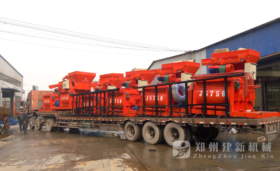 2015年12月1日,6臺(tái)JS750強(qiáng)制式混凝土攪拌機(jī)在鄭州建新機(jī)械廠家完成裝車,發(fā)往河南周口。