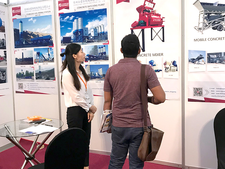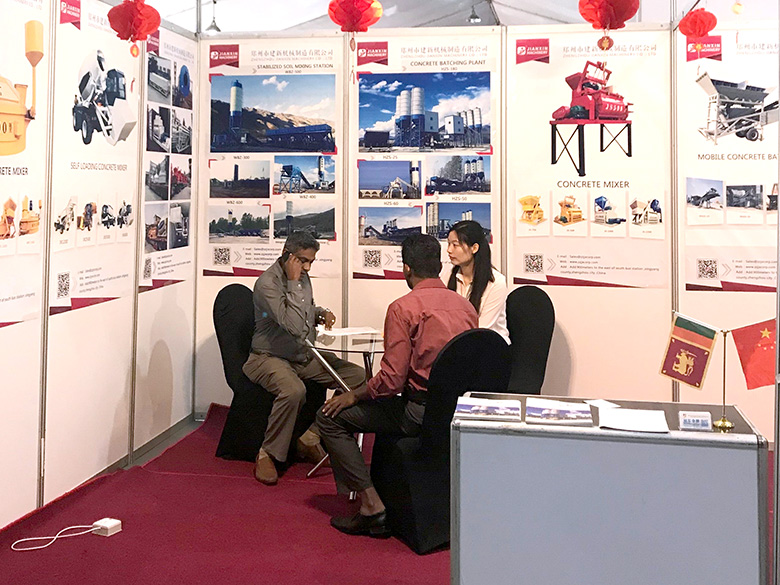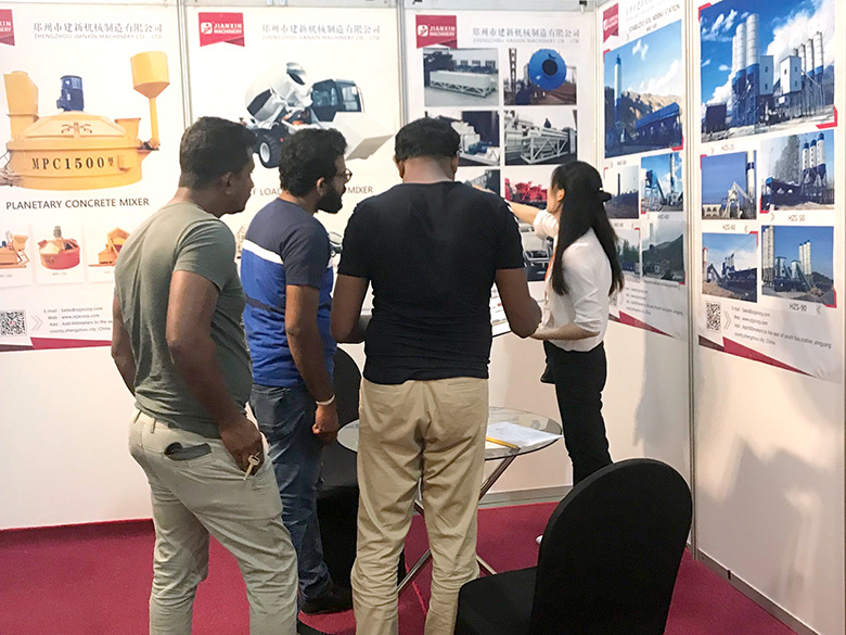 混凝土攪拌站、WBC系列穩(wěn)定土拌合站等產(chǎn)品吸引了絡繹不絕的觀展者駐足洽談。接待人員不失時機地向來觀展的客戶介紹建新機械的技術優(yōu)勢、產(chǎn)品特點、售后服務及銷售代理政策,其熱情的講解受到了廣大斯里蘭卡客戶和當?shù)毓こ虣C械人士的關注,部分客戶當場展開了詳細的商談。